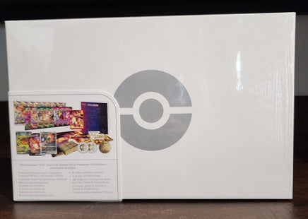 Celebrate the Sword & Shield Series and the era of Pokémon V, Pokémon VMAX, and Pokémon VSTAR with a hotshot who knows how to put all that power to good use! Charizard turns up the heat as a trio of promo cards with an etched foil treatment, and its Gigantamax form shows off blazing style on a playmat, metal coin, and set of card sleeves. Metal dice and condition markers round out this ultimate set of gameplay accessories. And as you open the huge stack of booster packs inside this box, take a journey through the Sword & Shield Series with an original booklet full of images and stats!