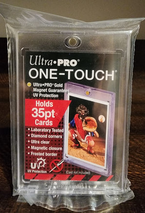 Ultra PRO's ONE-TOUCH holders are premium trading card storage cases designed as the final destination for your collectible trading cards. The two-piece ONE-TOUCH holders are uniquely designed with slide-in hinges and magnetic closure so you'll never have to use a screwdriver again. The holder uses UV-blocking additives to protect your card from harmful UV rays and is made with non-PVC materials to provide acid-free protection - ensuring your valuable hit retains its condition while under the display. Our ONE-TOUCH holders are ideal for presenting prized and super rare gaming cards as well. This model can hold standard cards (2.5" x 3.5") with multiple thickness options.